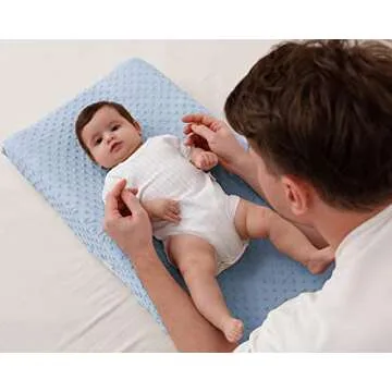 Show moreWelcome the arrival of your bundle of joy with our Changing Pad Cover – thoughtfully designed to marry both functionality and style. Crafted from a soft and breathable fleece material, this cover ensures that your baby stays cozy during diaper changes while providing a fashionable layer for standard changing table pads. Measuring 32"/34" x 16", this changing table cover fits most standard models, making it an essential addition to your nursery. The modern and unisex blue color not only enhances the aesthetic of your nursing room but also complements any decor. With ease of installation and maintenance, this is the ultimate baby changing accessory.