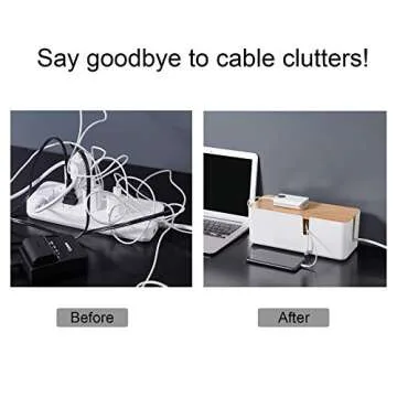 Changsuo Small Cable Management Box with Bamboo Lid for Extension Cord Power Stripe Surge Protector Wire Concealer Organizer Cover Hider (White)