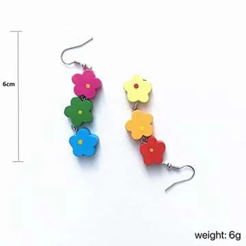 Show more Introducing the mesmerizing Channel V Colorful Dangle Earrings, an exquisite blend of artistry and playfulness that embodies the essence of fun floral designs. These lightweight earrings feature handcrafted wood beads fashioned into vibrant flowers, creating a striking visual appeal. Available in a kaleidoscope of colors, including red, blue, white, orange, yellow, green, purple, and more, each pair is uniquely arranged to brighten up your outfit. With their bright hues and charming design, these earrings are the perfect accessory to elevate any look, effortlessly transitioning from casual outings to more festive occasions. Made with hypoallergenic sterling silver, you can wear them confidently without worrying about skin irritations.