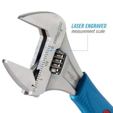 One standout feature is the laser-engraved measurement scales on the front and back, allowing users to size nuts and pipes with precision. Ideal for various tasks, users will appreciate the precise 4-thread knurl that promotes adjustment accuracy. Comfort isn’t compromised here either; the wrench comes equipped with Code Blue comfort grips for a non-slip and cushioned hold, making it suitable for extended use.