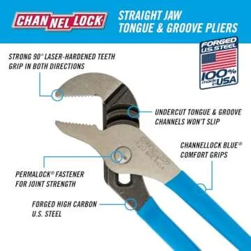 The Channellock Tongue and Groove Pliers feature a smooth action for quick and easy adjustments.