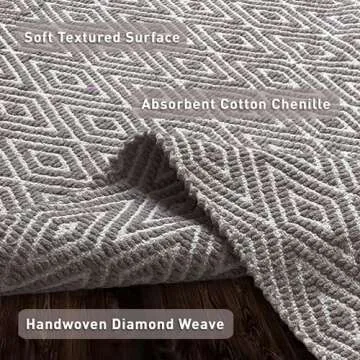 Chardin home 100% Cotton Diamond Rug Fully Reversible - Mat Size 21''x34'', Machine Washable, Greyish Beige & White