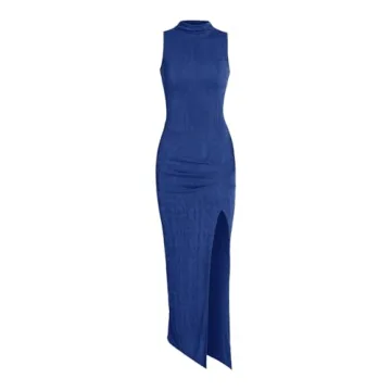 Show more Introducing the stunning Charfille Women Sexy Semi Sheer Sleeveless Mock Turtleneck Jersey Ruched Thigh Slit Bodycon Maxi Dress—a fashion must-have that’s set to redefine your wardrobe! This gorgeous dress combines style and comfort, expertly tailored to accentuate your natural curves while providing breathability and ease. Crafted from a luxuriously stretchy fabric, it caters seamlessly to your body’s shape, ensuring a flawless fit every time.