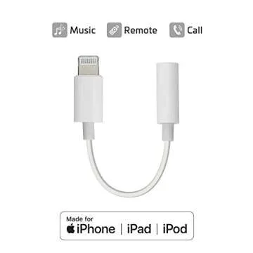 Show more Introducing the ChargeWorx Premium 3.5 Lightning Adapter, a must-have accessory for iPhone users who want to maintain their audio experience without compromise. This adapter is MFI certified by Apple, ensuring it meets the highest standards of quality and compatibility with iPhones, iPads, and iPods. Say goodbye to audio distortion and hello to pure sound clarity as you transition from traditional headphones to the newer Lightning technology. This compact and sleek adapter works seamlessly with an array of iPhone models, including the iPhone 12, 11, and many more, guaranteeing that you can enjoy your favorite tunes anywhere you go.