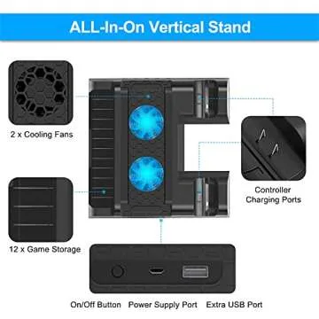 Charging Station for Xbox One Xbox One S Xbox One X Console and Controllers, Stand Accessories with 600 mAh Batteries 2 Pack,2 Cooling Fans,LED Indicators and Games Storage