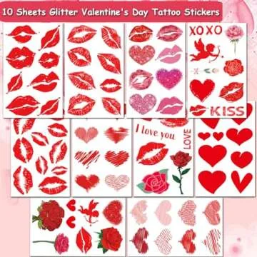 CHARLENT Red Sexy Lips and Heart Temporary Tattoos for Valentine's Day Party Supplies - 10 Sheets Valentine's Day Tattoos for Party Supplies Favors Decorations Gifts