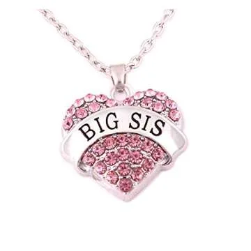 Charm.L Grace Crystal Heart Necklaces Set Mom Big Sis Middle Lil Sister (Pink, 2)