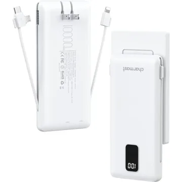 Show moreIntroducing the Charmast Portable Charger with Built-in Cables & Wall Plug—your ultimate travel companion designed to keep your devices powered up anytime, anywhere. This 10000mAh power bank is perfect for busy professionals, travelers, or anyone who's always on the go. Featuring integrated USB-C, micro USB, and Lightning cables, this charger eliminates the hassle of carrying multiple cords. With its built-in wall plug, recharging is as easy as plugging it into a wall outlet, making it a visually appealing gadget with its sleek design and functionality that truly shines.Ultimately, it's not just a portable charger but a remarkable travel essential that ensures you stay connected throughout your busy day.