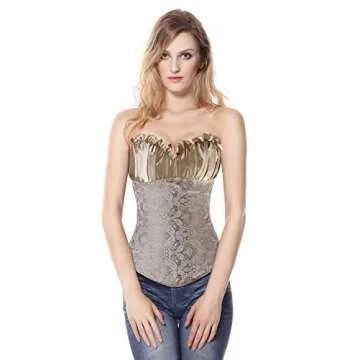 Charmian Women's Plus Size Renaissance Bustier Wedding Bridal Top Lace Up Overbust Corset Ivory XXXX-Large