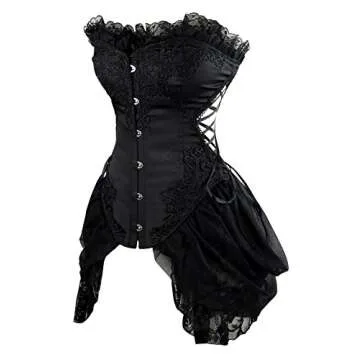If you're looking to transform yourself into a stunning gothic princess or a captivating character for Halloween, the Charmian Women's Sexy Strapless Floral Embroidery Mesh Princess Gothic Vintage Bustier Corset is your perfect match. Crafted with exquisite attention to detail, this corset features a striking sweetheart neckline adorned with double-layer floral lace and mesh, designed to elegantly showcase your neck and collarbone. The sophisticated bodice is beautifully embellished with...