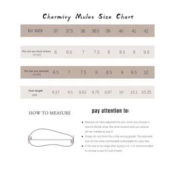 When comparing Charmivy mules with other similar footwear brands, you’ll notice several standout features. Unlike many competitors, Charmivy focuses on the unique combination of vegan materials coupled with enhanced comfort. Many brands sacrifice comfort for style, but Charmivy successfully marries both. While others may not offer a robust size adjustment (0.5 size larger) feature that guarantees a better fit, Charmivy prioritizes your comfort and satisfaction. With its beautiful design and affordable price, Charmivy mules deliver unmatched value, elevating your footwear choice.