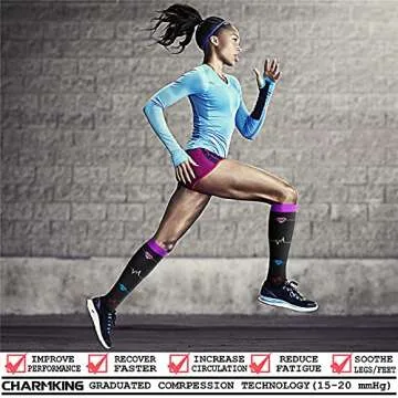 CHARMKING 6 Pairs-Compression Socks for Women & Men Circulation Best Support for Nurses, Running, Athletic,Flight Travel (Multi 20,S/M)