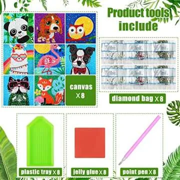 Charniol 8 Pieces Diamond Art Kit for Kids Crafts for Kids DIY Animal 5D Diamond Painting Kits for Kids Ages 8-12 Gem Art by Number Dots Kits for Boys & Girls for Birthday Gifts, 6X6 inch