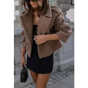 Show more Elevate your winter wardrobe with this stunning women's winter short jacket, a perfect blend of comfort and style. Designed as a cropped wool blend peacoat, its elegant double-breasted design is not just a seasonal option, but a timeless piece that will never go out of style. Crafted for those chilly days, this blazer-style warm pea coat complements casual professional outfits effortlessly. The casual loose fit makes it ideal for layering over everything from dresses to jeans, ensuring you maintain a polished yet comfortable look.