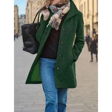 CHARTOU Women's Casual Thicken Wool Blend Stand Collar Single Breasted Pea Coat (Large, Green)