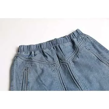 CHARTOU Women's Retro Elastic High Waist Frayed A-Line Maxi Denim Skirt with Pockets (Medium, Light Blue)