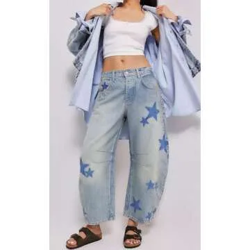 The barrel cut and wide-leg silhouette cater beautifully to various body types, providing both style and ease of movement. Adorned with enchanting heart prints or striking stars, they offer a touch of retro charm and help you stand out in any crowd. Designed for functionality, these jeans come with two side pockets for easy access to your essentials.