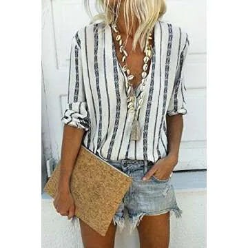 Show moreIntroducing the Chase Secret Women's Summer Casual V Neck Striped Short Sleeve Tunic Blouse, your new go-to top for ultimate style and comfort! Made from lightweight, soft, and breathable fabric, this tunic top is designed to keep you feeling fresh and chic all day long. The adjustable v-neck with button details provides a versatile look that enhances any outfit. With its attractive striped print and flattering slim fit, this blouse is perfect for effortlessly elevating your everyday wardrobe.