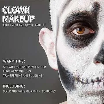 CHASPA Face Paint Black + White Clown Makeup Face Body Paint Set, High Pigment Professional Oil-Based Cosmetic Paint for Halloween SFX Makeup Costume Multiple Uses(60g/2.11 oz)