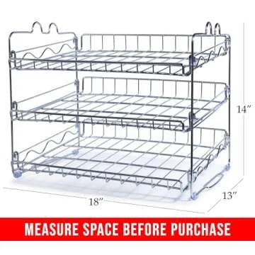 Show more This amazing Can Rack Organizer is your ultimate solution for a clutter-free pantry! Constructed from heavy-duty steel, its robust design ensures it can handle the weight of up to 36 cans, providing long-lasting durability and stability for your kitchen. Maximizing your storage space has never been easier: with its compact footprint, you can optimize pantry or cabinet areas without sacrificing accessibility.