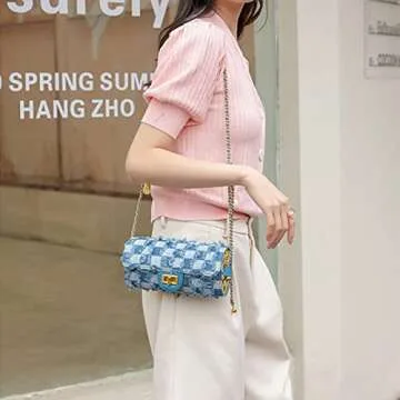 Checkerboard Shoulder Bag for Women Denim Retro Classic Purse Clutch Shoulder HandBag 20