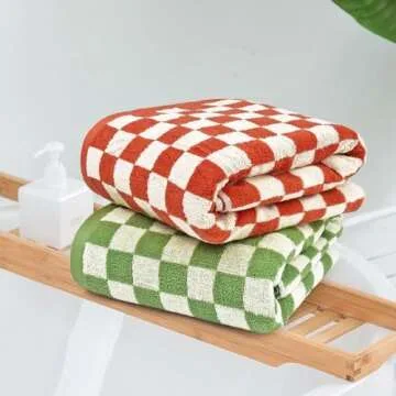 Checkered Bath Towels for Bathroom Beach, 2 Pack Shower Towels 55" x 27.5", Super Soft and Quick Dry (Orange + Green), Colorful for Swim Pool Summer