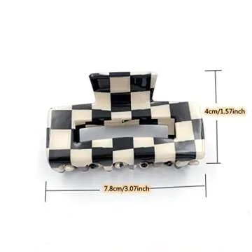 Checkered Hair Claw Clips for Styling Thick Hair with Retro Design