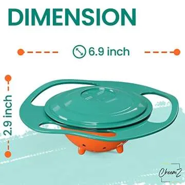 CheemZ Toddler Gyro Bowl - Baby Magic Bowl - 360 for Kids Age 1 to 3 Years - Spill-Resistant with Lid and 360° Rotations - Mess-Free Snack Bowls in Green, Compact Size: 17 x 17 x 7cm