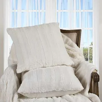 Cheer Collection Faux Fur Throw Pillows - Decorative Pillows for Couch, Bed Throw Pillows, White Accent Pillows for Bedroom or Living Room Aesthetic, Set of 2 Furry Throw Pillows, 18”x18”