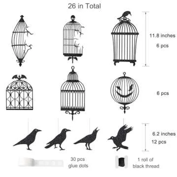 Cheerland Crow & Cage Garland Black Gothic Decorations Indoor Raven Decor Horror Birthday Party Supplies Decor Black Crow Halloween Banner