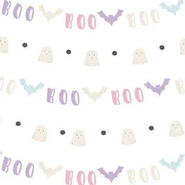 Cheerland Halloween Banners Pastel Bat Boo Ghost Garlands Photo Booth Background Backdrop for Themed Birthday Halloween Party Supplies - Pack of 2