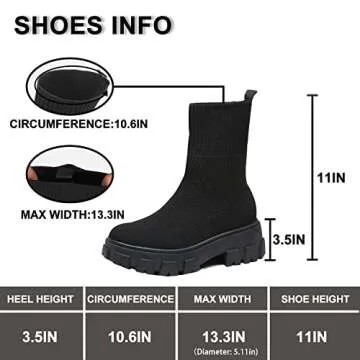 CHEERMORE Women Ankle Boot, Short Booties Slip on Platform Stretchy Socks Boots Chunky Block Low Heel Chelsea Boot, Knit Sports Walking Shoes Breathable High-Top Sneakers