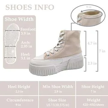 Cheermore Womens Platform High Top Sneakers Lace Up Canvas Shoes Fashion Comfortable Casual W Beige