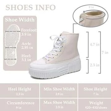 Cheermore Womens Platform High Top Sneakers Lace Up Canvas Shoes Fashion Comfortable Casual Beige