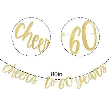 Cheers to 60 Years Banner- Cheers to 60 Years, Cheering 60 Years Banner, 60th Birthday Decorations, 60th Birthday Banner, Gold Happy 60th Birthday Party Banner