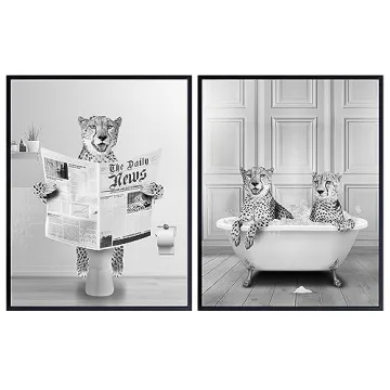 Show moreTransform your space into a sanctuary of style with our Cheetah Print Wall Art Black Bathroom Decor. This charming set of two 8x10 unframed prints features playful leopard designs that add a dash of humor and sophistication to any environment, especially the bathroom. Perfectly catering to the desires of women, girls, and teens, this wall art set boasts unique, striking visuals that enhance the overall aesthetic of your powder room or restroom. Not only does it embrace contemporary and modern design principles, but it also reflects a love for nature through animal-inspired art. Brighten up your walls with these cute cat-themed prints that promise to uplift any space!