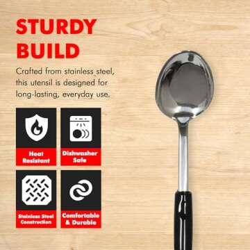 When compared to other basting spoons on the market, the Chef Craft Select Heavy Duty Basting Spoon truly stands out due to its superior stainless steel build and thoughtful ergonomic design. Unlike many competitors, which may be prone to rust or wear over time, this spoon's rust-resistant features and robust integrity make it a reliable choice. Additionally, its unique thin edge design significantly enhances its versatility, allowing for effortless scraping and stirring, which many competitor products fail to address. With a balance of quality, comfort, and functionality, it's easy to see why this spoon is favored over others.