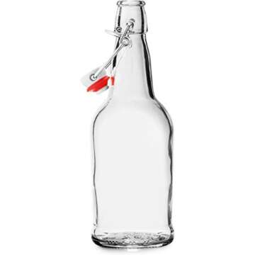 Chef’s Star 16 Oz Empty Beer Bottles, Swing Top Glass Bottles, Flip Top Glass Bottle with Caps, Fermentation Home Brewing Kombucha Beer and Coquito, with Brush and Funnel, Clear, Set of 12