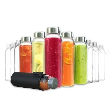 Chef's Star 18 Oz Clear Glass Water Bottles – 12 Reusable Bottles with Sleeves