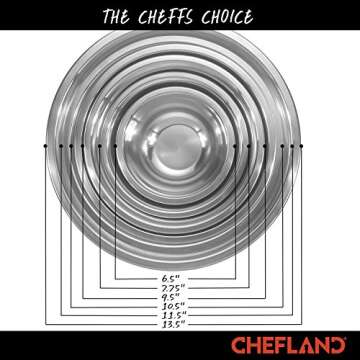ChefLand Set of 6 Standard Weight Mixing Bowls, Stainless Steel, Mirror Finish, 0.75, 1.5, 3, 4, 5, and 8 Qt. (Mixing Bowl Set Of 6)