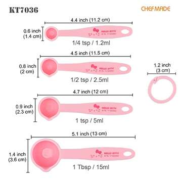 CHEFMADE Hello Kitty Measuring Spoons Set, 4Pcs Double Scale Measuring Cups Measuring Spoons Stackable for Measuring Dry and Liquid Ingredients for Baking and Cooking (Pink)