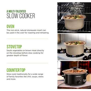 Chefman 5 Qt. Slow Cooker, All-Natural, Glaze & Chemical-Free Pot , Stovetop or Oven Cooking, Dishwasher Safe Crock; Naturally Nonstick & Paleo-Friendly, Low-Lead Stoneware, Bonus Recipes Included