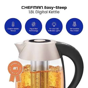 Show moreExperience the ultimate convenience and style with the Chefman Digital Electric Kettle, designed for those who value both functionality and aesthetics. This stunning kettle not only boasts an elegant rose color but also features rapid boiling technology, bringing just 2 cups of water to a boil in an incredible 3 minutes and a full pot in approximately 7 minutes. Whether you're in need of a quick cup of coffee, a soothing tea, or even instant oatmeal, this kettle will have your hot beverages ready faster than ever. Embrace the trend of café-style beverages at home, effortlessly whipping up Dalgona coffee, matcha, and herbal lattes in no time!