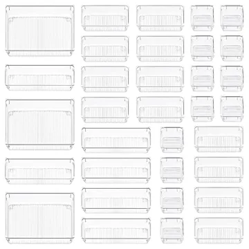 Show moreIf you're tired of a cluttered and chaotic workspace, look no further than the CHEFSTORY 33 PCS Clear Drawer Organizers Set. This versatile set of organizers is crafted to be your ultimate solution for keeping your desk and office drawers in pristine condition! Designed with functionality in mind, these trays provide an elegant way to categorize and store everything from office supplies to cosmetics. Say goodbye to messy drawers and hello to effortless organization!