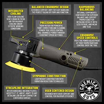 Show more The Chemical Guys TORQX Kit is the ultimate all-in-one detailing solution designed for both professional detailers and automotive enthusiasts alike. This comprehensive kit includes everything you need to polish paint, remove unsightly swirls, scratches, and oxidation, as well as restore clarity to headlights and clean glass surfaces. With its 700-watt motor and 8mm dual-action orbital throw, this powerful and compact polisher ensures a consistent, high-quality finish, making your vehicle look as good as new.