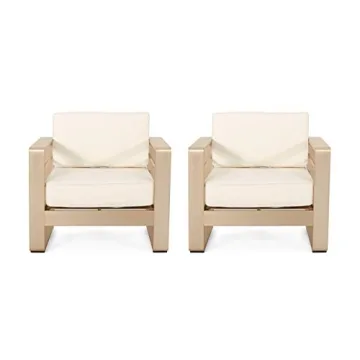 Cheney Bay Outdoor Aluminum Club Chairs (Set of 2), Gold and White
