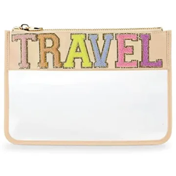 Chenille Letter Travel Pouch - Stylish Nylon and PVC Clear Organizer with Glitter