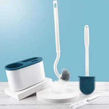 CHEOTIME Toilet Bowl Brush Holder Set, Toilet Brush Set Long Handle Soft Bristles Cleaning Brush Wall Hanging Toilet Brush Kit for Bathroom(Blue)