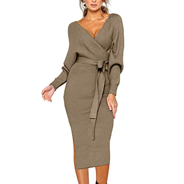 Show moreThe CHERFLY Women's V Neck Sweater Dress is a stunning blend of style and comfort, perfect for those who want to feel both chic and confident. Designed with a striking V-neck and backless silhouette, this dress expertly combines classic elegance with modern flair. The batwing long sleeves add a unique twist, making it a showstopper for any occasion. Made from soft and stretchy fabric, it contours beautifully to your body, ensuring a flattering fit across various body types. Additionally, the included belt cinches at the waist, enhancing your natural curves while providing that extra touch of sophistication.