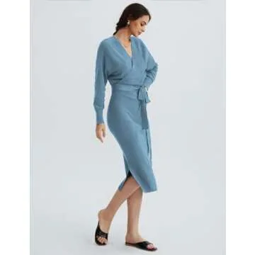 Discover the perfect blend of style and comfort with the CHERFLY Women's V Neck Sweater Dress. Made from a stretchy and soft fabric, this body-hugging dress showcases exceptional workmanship that flatters all body types. The elegant V neckline and batwing long sleeves add a touch of sophistication, making it an essential addition to every woman’s wardrobe. Whether you're attending a wedding, heading to the office, or enjoying a night out, this dress effortlessly...